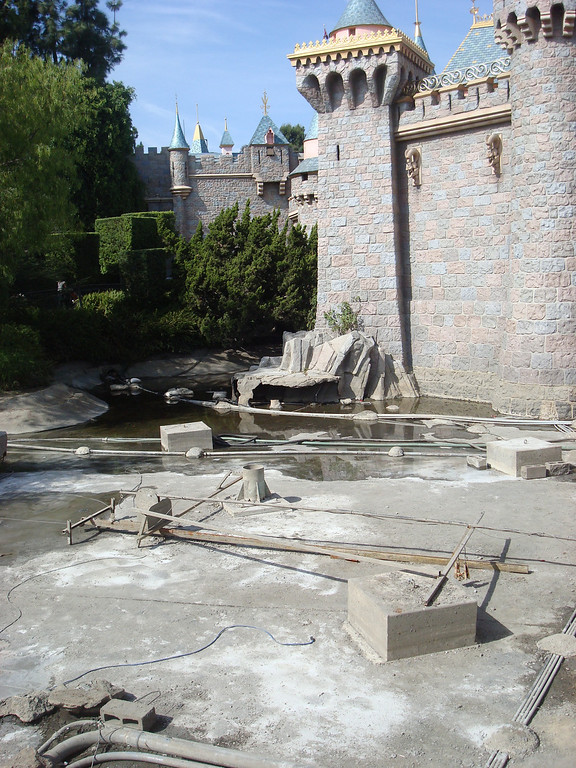 The moat around Sleeping Beauty Castle has been drained for some work to be done