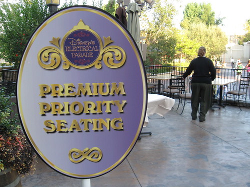 Priority seating for Disney’s Electrical Parade is in the Golden Vine Winery right next to the Blue Sky Cellar