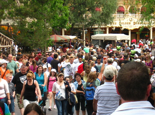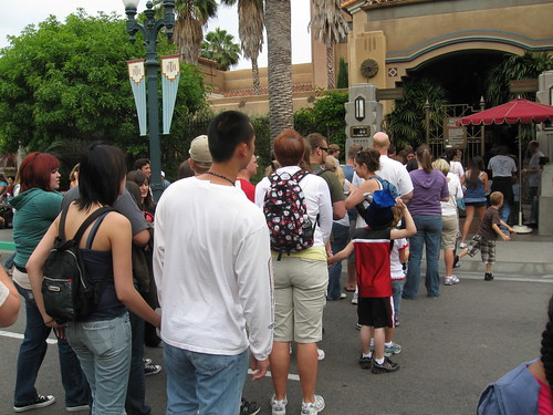 These people were waiting for the rest of their party. Large crowds were everywhere you looked