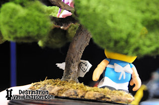 | Evilos hid his wife’s and his initials in his Alice piece. |