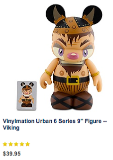 There are two remaining single 9”s from Urban 6, priced at $39.95, still available online. With rainbow hearts and hidden Mickeys galore, the Love Vinylmation, designed by Padla Gutierrez, is a LE of 800 and still available. The Viking, by designer Doug Strayer is a LE of 800, and spawns from the Viking hat combo that was produced earlier this year.
