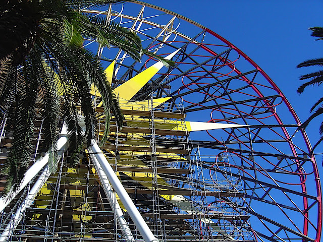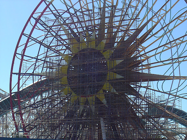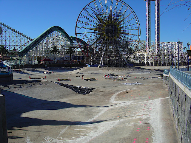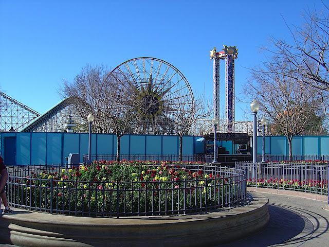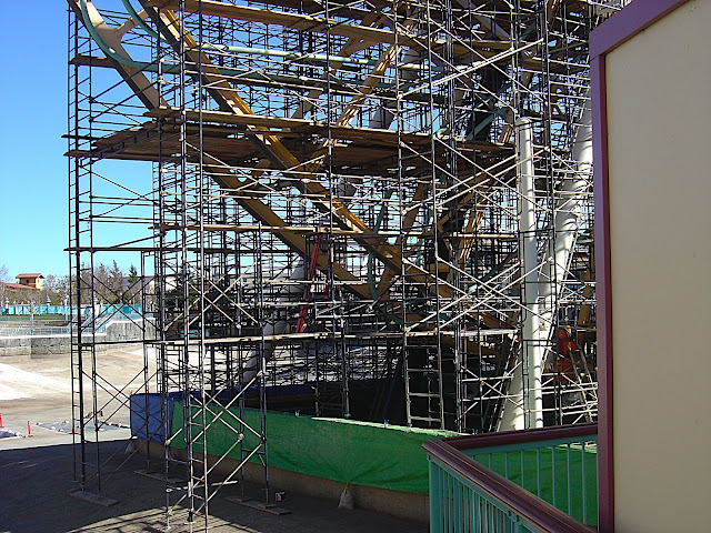 The front side of Mickey’s Fun Wheel shows similar progress.