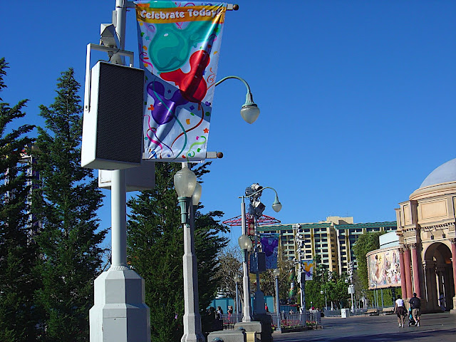 And it was just too hard to get to Cinderella, so I headed out of Disneyland. Here you see more Celebrate Today! banners in the Esplanade.