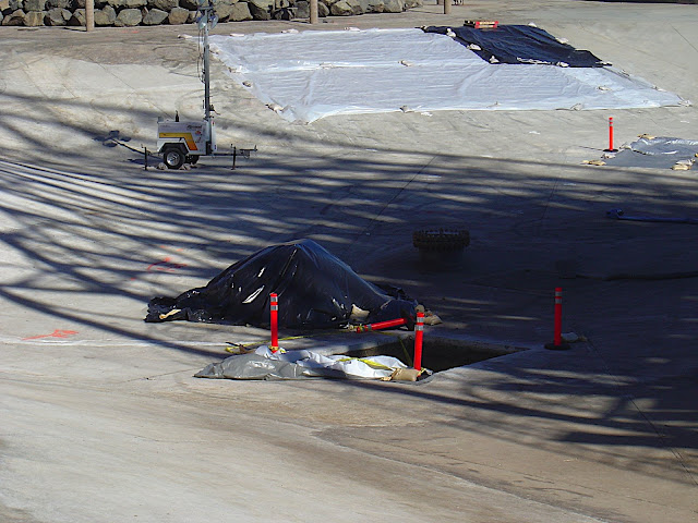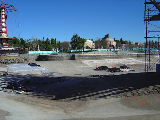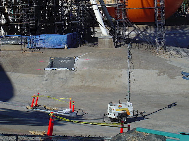 The Golden State Amphitheater is walled off to get some enhancements for World of Color viewing.