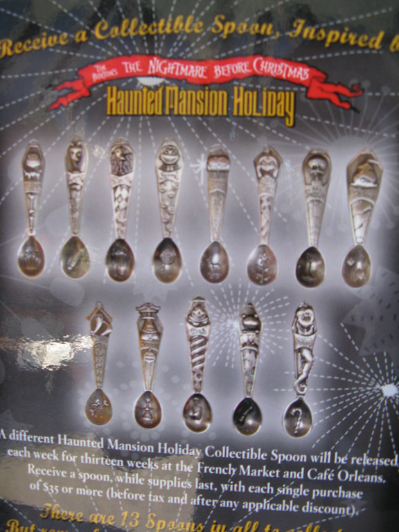 A Haunted Mansion Holiday themed spoon collection at the French Market and Cafe Orleans