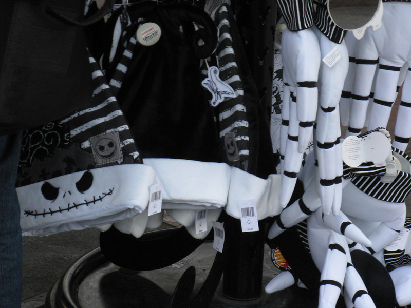 Haunted Mansion and “Nightmare Before Christmas” merchandise at the cart outside Haunted Mansion Holiday