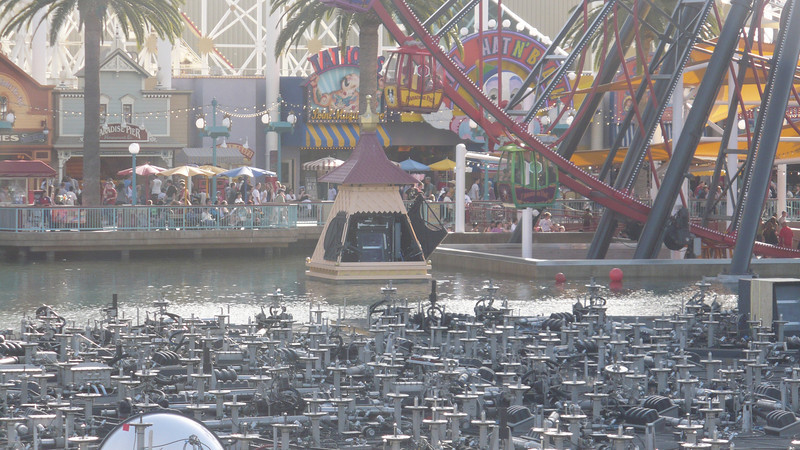Carsland crane visible from Paradise Pier. Wish I could say it was ruining theme, but there isn’t much to ruin