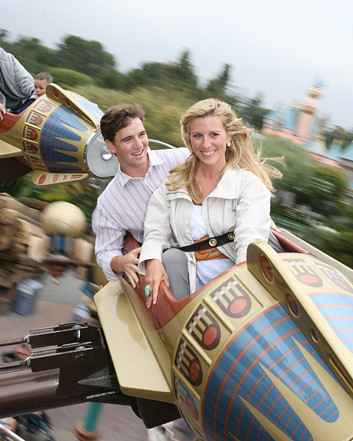 Here the newlyweds enjoy a post-parade spin on the Astro Orbitor at Disneyland: