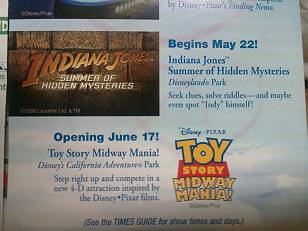 First off, more confirmation of the Indiana Jones Summer of Hidden Mysteries, which will begin on May 22nd. And secondly, this is the first time that the new Toy Story Midway Mania attraction has had the Midway part of the name including in anything promotional. That makes me happy!