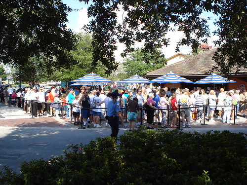 The line for the Haunted Mansion Friday the 13th pin release at the Disney Pin Traders in Downtown Disney.