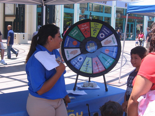 It looks as if you spin this wheel, & you either win prizes or get to play a game of some sort