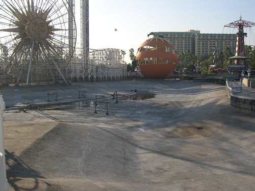 The Paradise Pier lagoon is now completely drained.