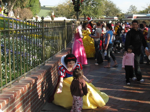 2:20pm. I decided to check the front gate & see if they were still letting people in. They said it would probably be full within another hour. They brought out the Princesses… plus Goofy.