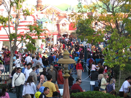 3:25pm. The walkway from Small World to Fantasyland. This is one the most crowded times I ever saw, but that was mainly due to the street being cleared for the parade.