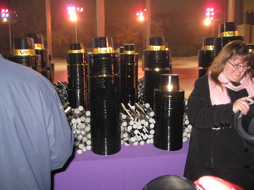 6:43pm. Headed to get my hat & horn. They opened up the Festival Arena for distribution.