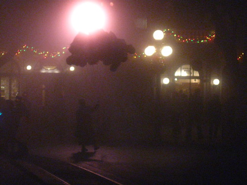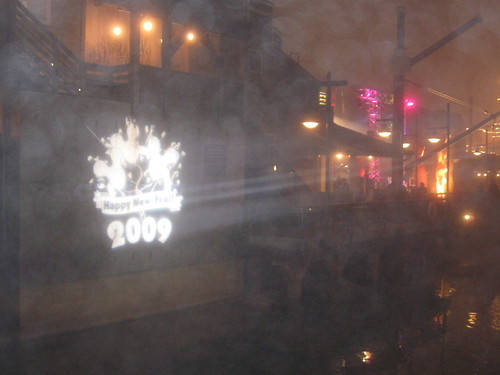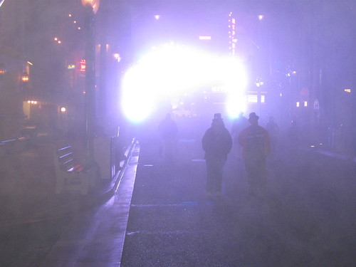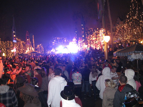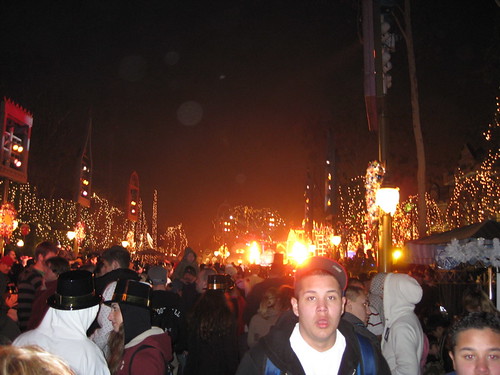 10:34pm. A really thick fog fell over Disneyland. It was kind of eerie. Also, people leaving the park were simply heading home. California Adventure was incredibly EMPTY!