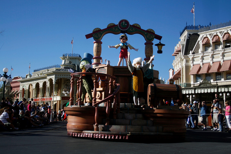 The Pinocchio float leads off the parade.