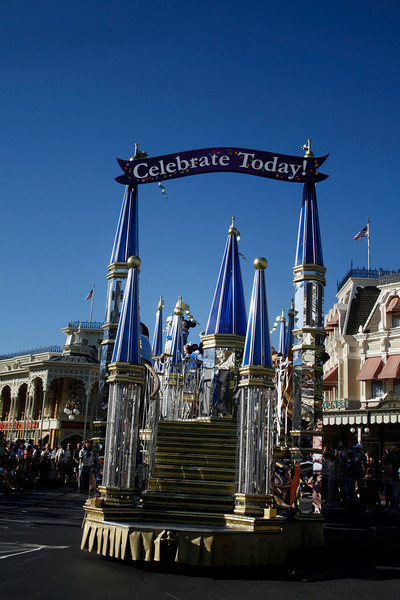 The new “Celebrate Today!” banner on the Castle float.