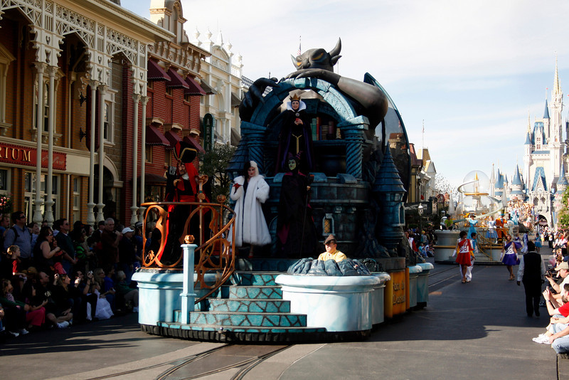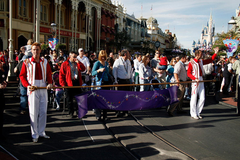 This purple banner signifies the end of what may be the strangest Magic Kingdom parade of all-time