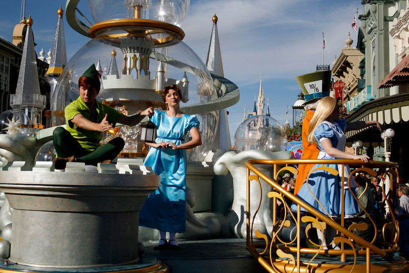Wendy has moved over to make room for Alice and the Mad Hatter. All of the float characters actually have a speaking part.