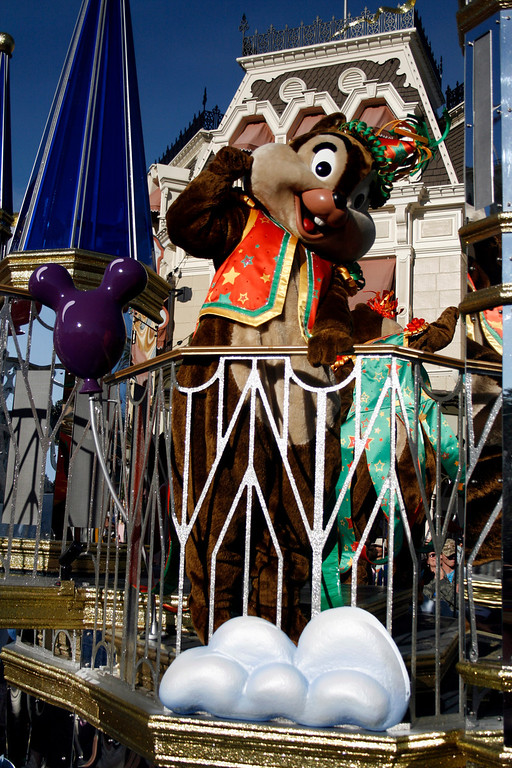 Some clouds and Mickey balloons have been added to the float. The characters on this float are now wearing some new costumes to match the theme.