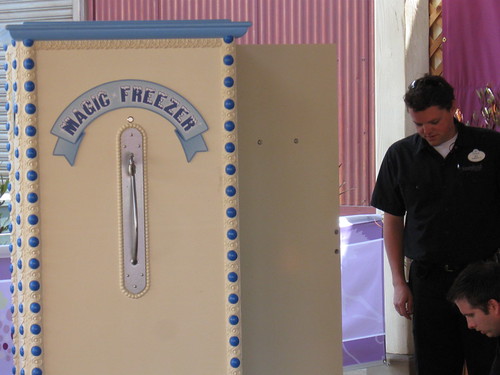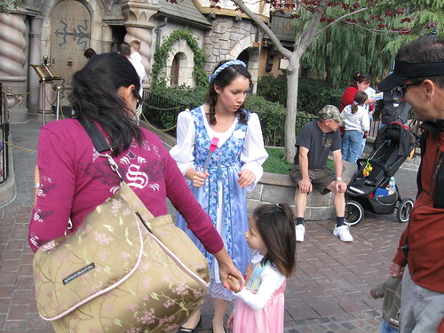 Cast Members were outside the Bibbidi Bobbidi Boutique trying to entice customers by using wands to “turn little girls into princesses”