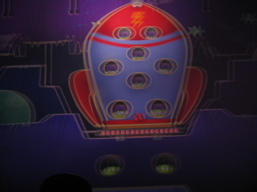 Chuck played a very broken round of Toy Story Midway Mania. The gun would only fire across the middle of the screen, no matter how much he raised or lowered it. When Chuck got to this game, the Little Green Men stayed inside their holes!