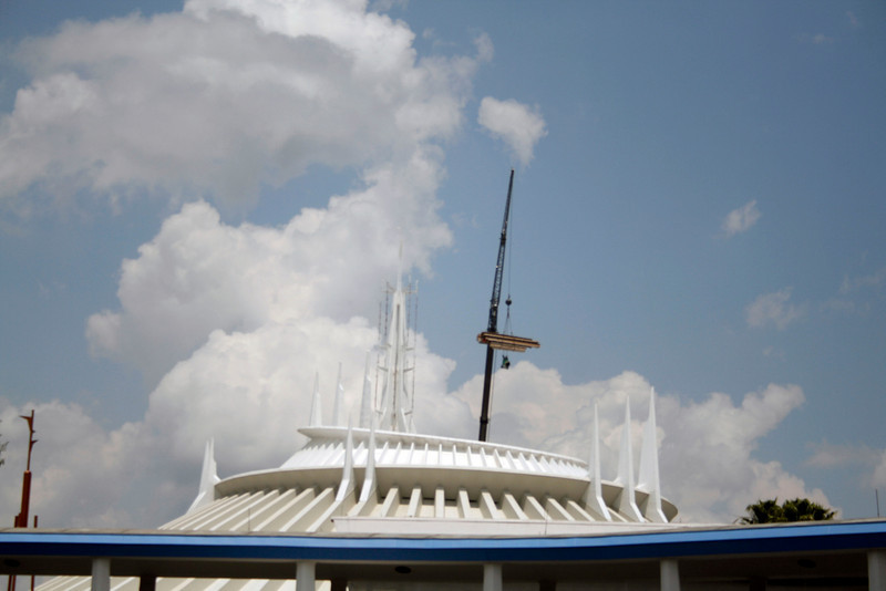 Actually, it’s just a crane lowering materials into Space Mountain during it’s lengthy refurbishment