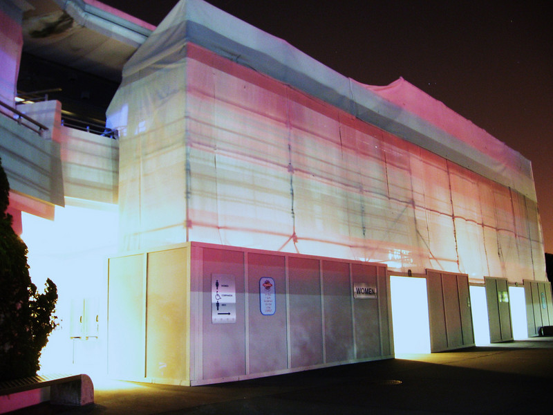 But is still covered in tarps on this side. Rumors indicate some or all of the structure may be demolished.