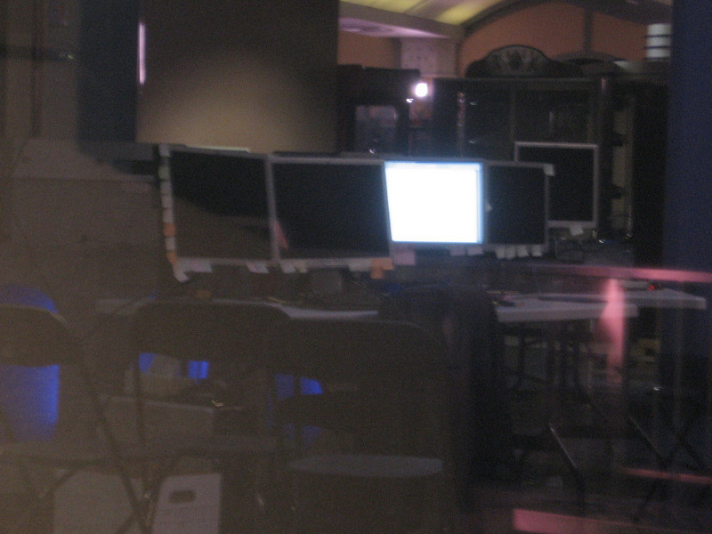 Inside, all of the arcade machines have been pushed into a corner to make room for tables, blueprints, and plenty of computers