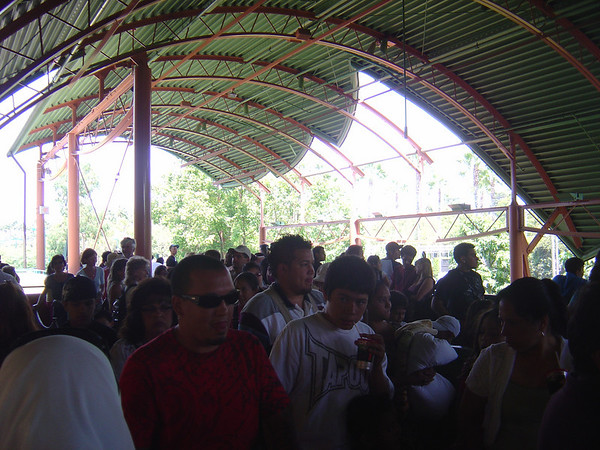 The line at the Downtown Disney Monorail station was 3 switch-backs long, which meant a wait of over half an hour. Only Monorail Blue was running