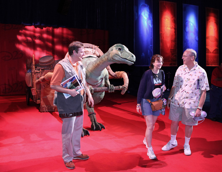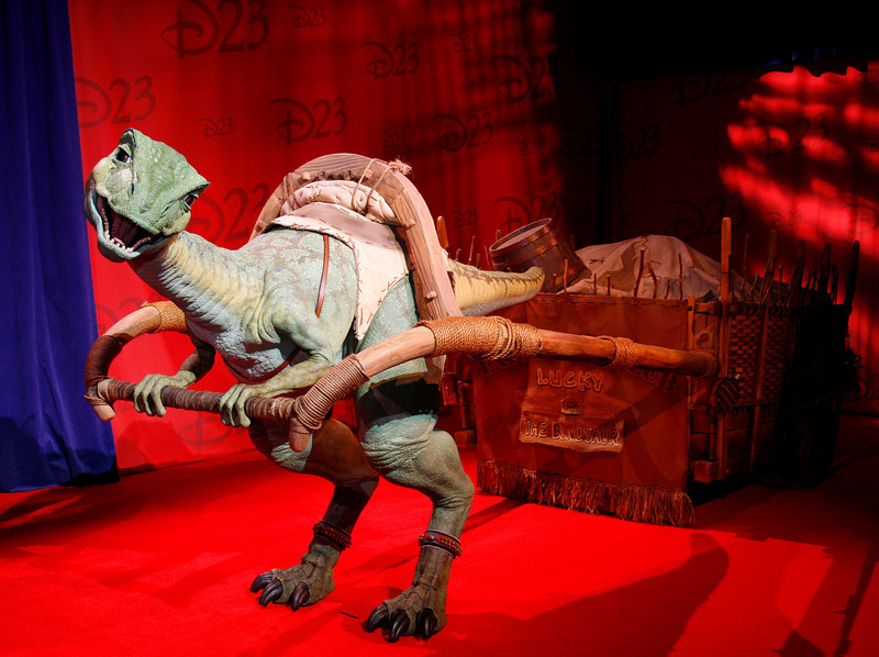 Lucky the Dinosaur greets guests of the Walt Disney Parks and Resorts pavilion from Sept. 10th to Sept. 13th at the Anaheim Convention Center during the first-ever D23 Expo