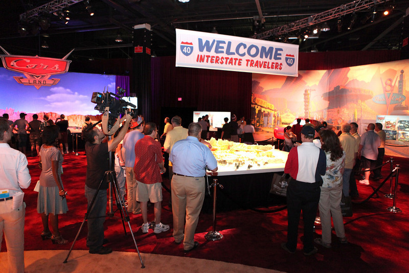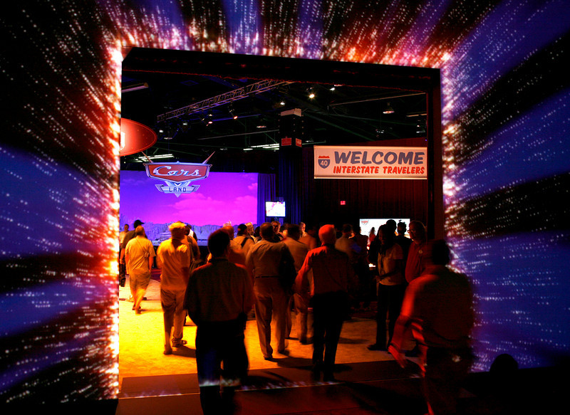 Visitors enter Walt Disney Parks and Resorts pavilion, where some great previews of Cars Land at Disneyland are offered