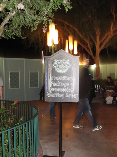 Now on to the event itself on 9/9/09. After dinner and the talk with Disney Imagineers, guests were escorted into Disneyland Park for a spooktacular ride on The Haunted Mansion