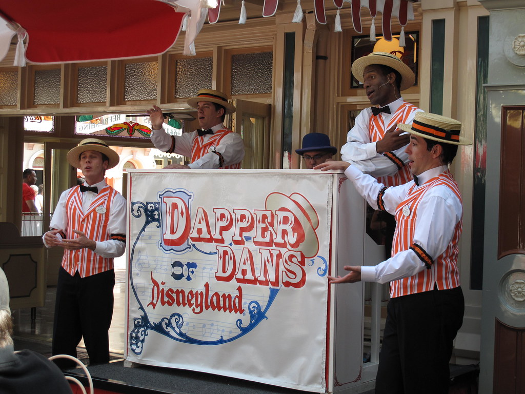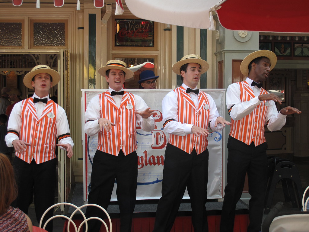 The Dapper Dans in their Halloween outfits, along with the Piano Man, at Coke Corner