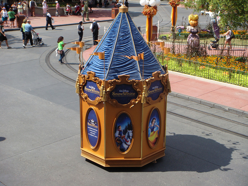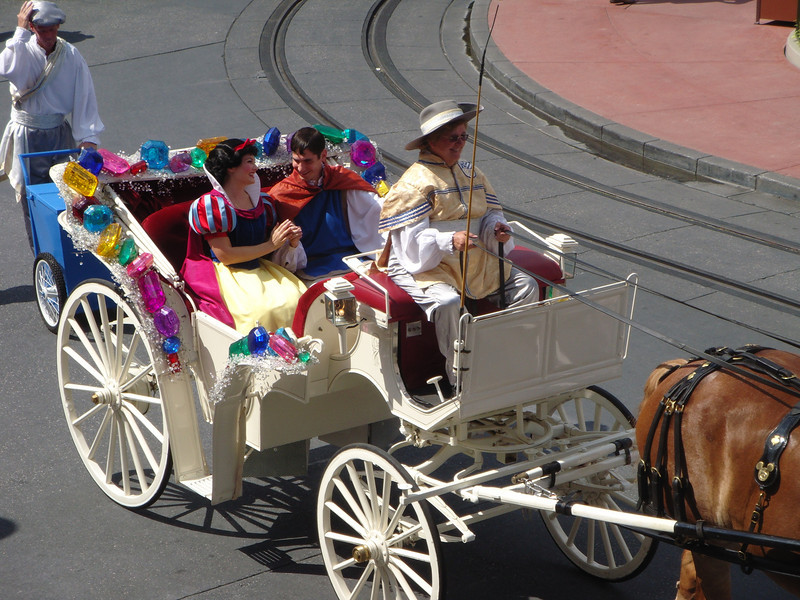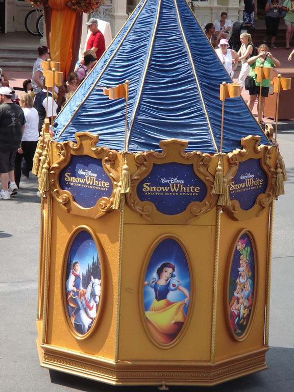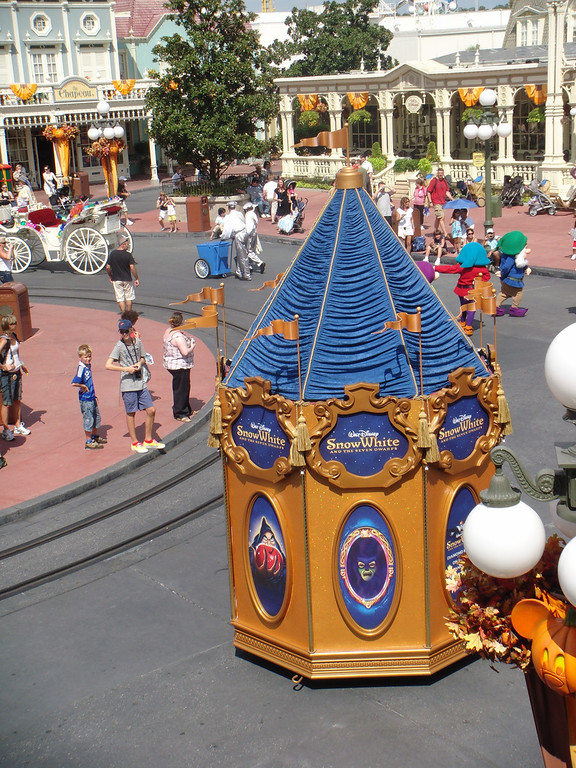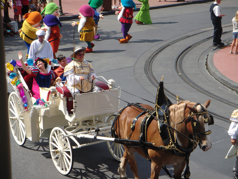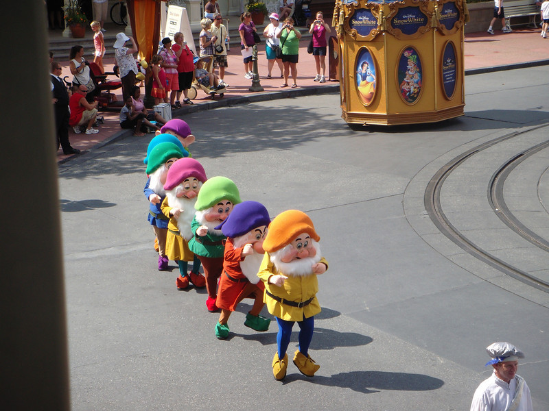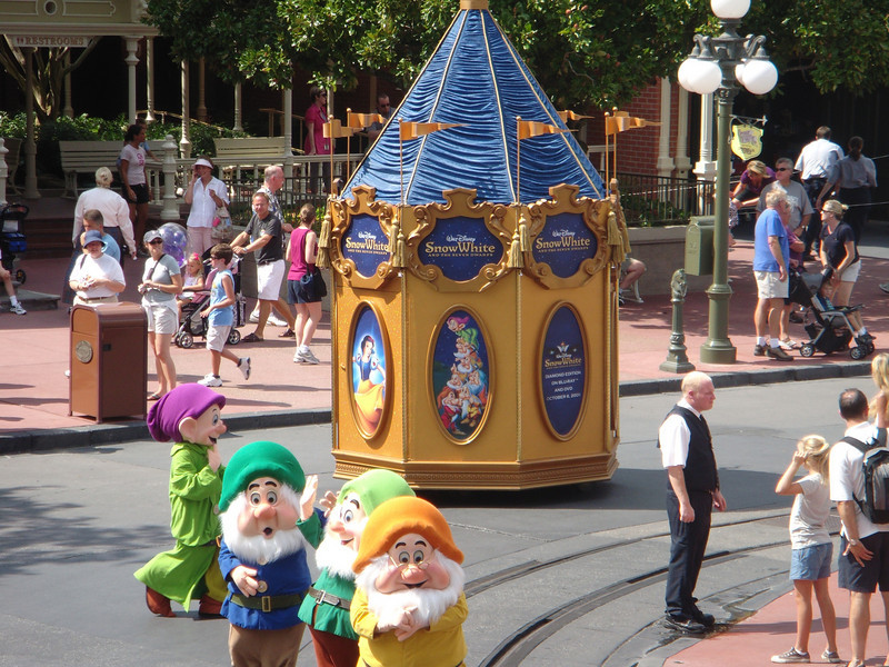 At the Magic Kingdom, a “Snow White and the Seven Dwarfs” pre-parade is running to promote the DVD and Blu-ray release of the film