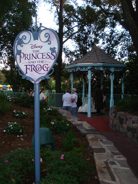 Here is the new meet and greet area for The Princess and the Frog characters behind Ye Olde Christmas Shoppe in Liberty Square