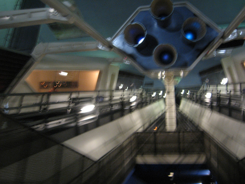 From aboard the TTA, we can see a new monitor and spacecraft in one portion of the Space Mountain exit