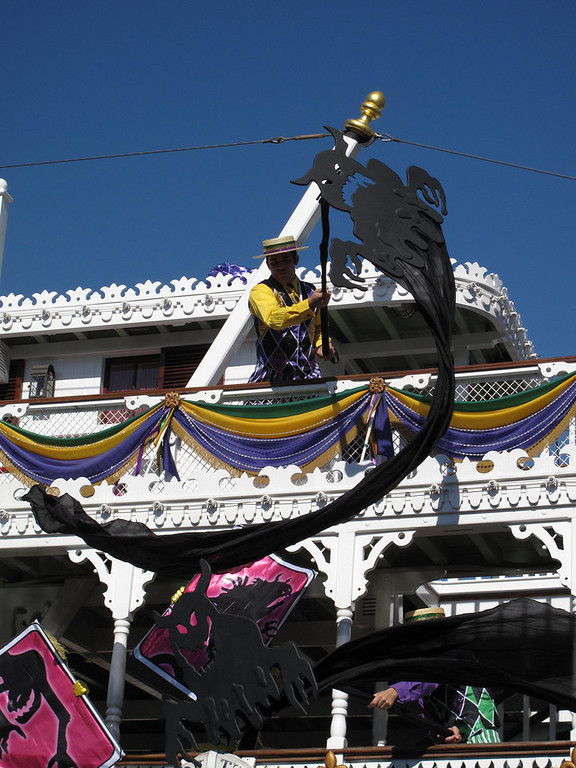 After circling around the Rivers of America, the performers exit the Mark Twain and proceed back through New Orleans Square