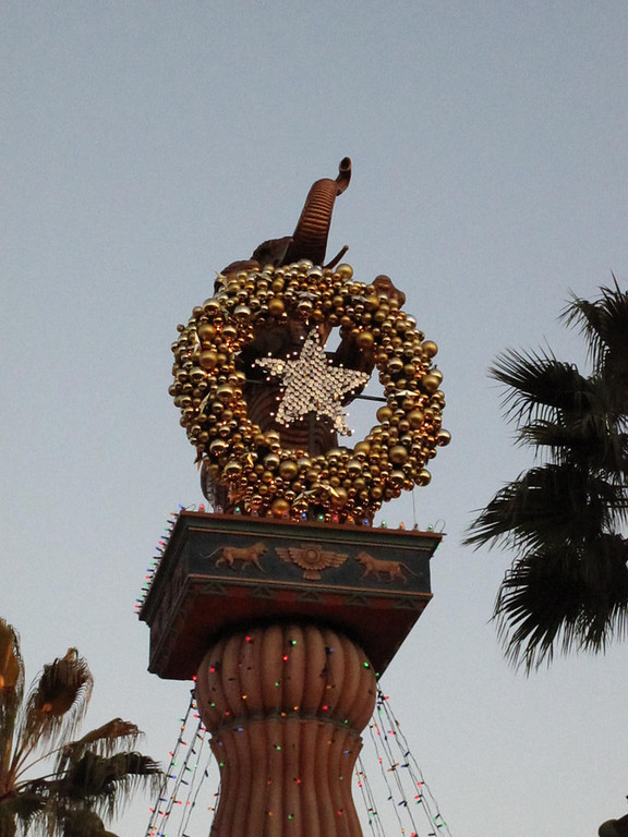 The Hollywood Pictures Backlot elephants “hold up” Christmas wreaths