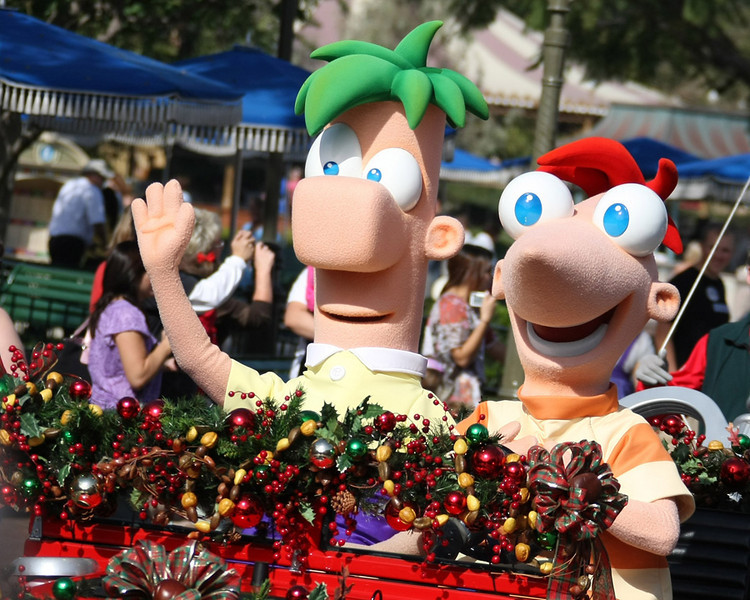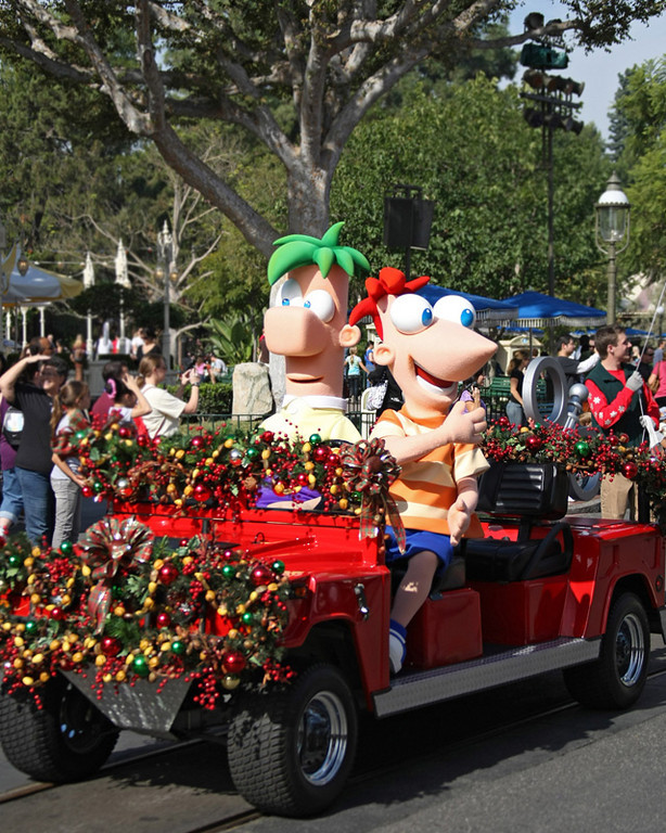 According to the Disney Parks Blog, the Disney Channel’s Phineas and Ferb made their debut in the parks at Monday’s taping of the Disney Parks Christmas Special. Phineas and Ferb rode down Main Street USA on the car usually designated for Chip and Dale in A Christmas Fantasy Parade. While the characters are not currently appearing for meet ‘n greets in the parks, that could be a possibility at both Disneyland and Walt Disney World next year.