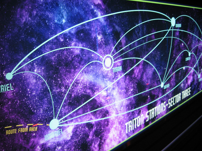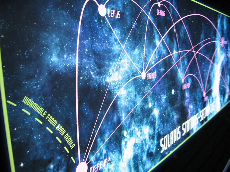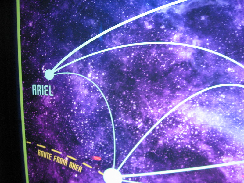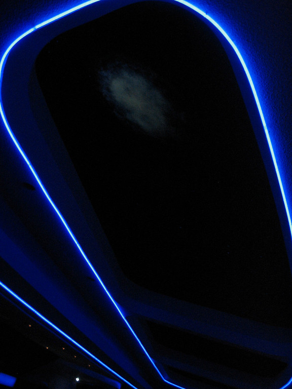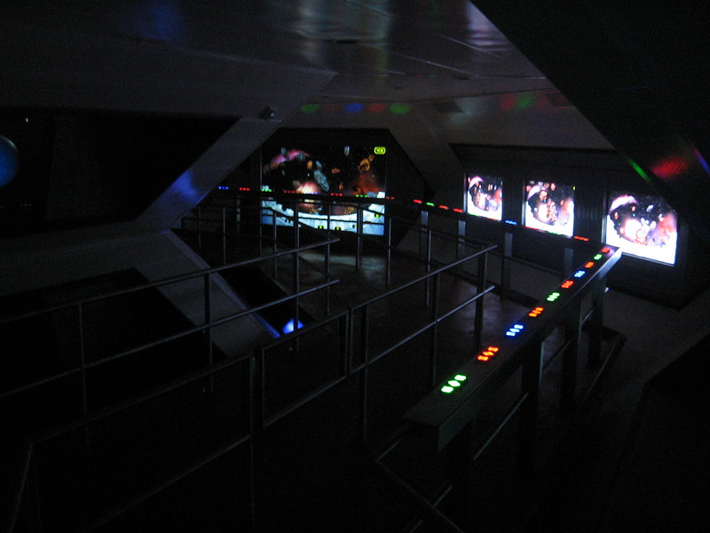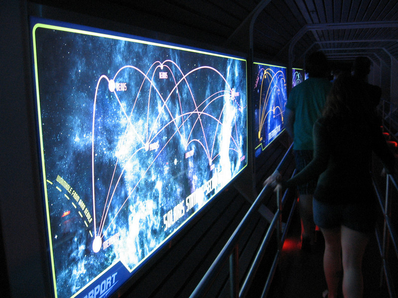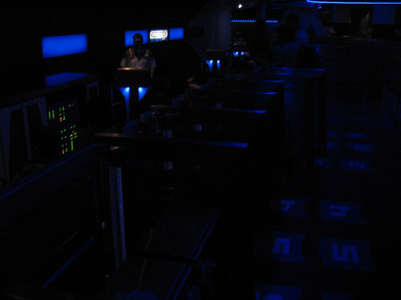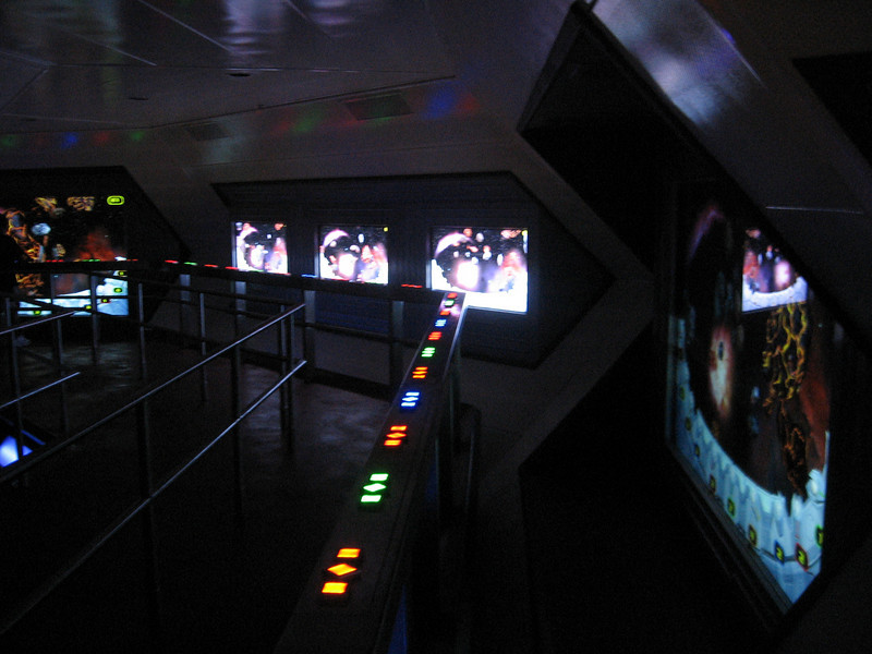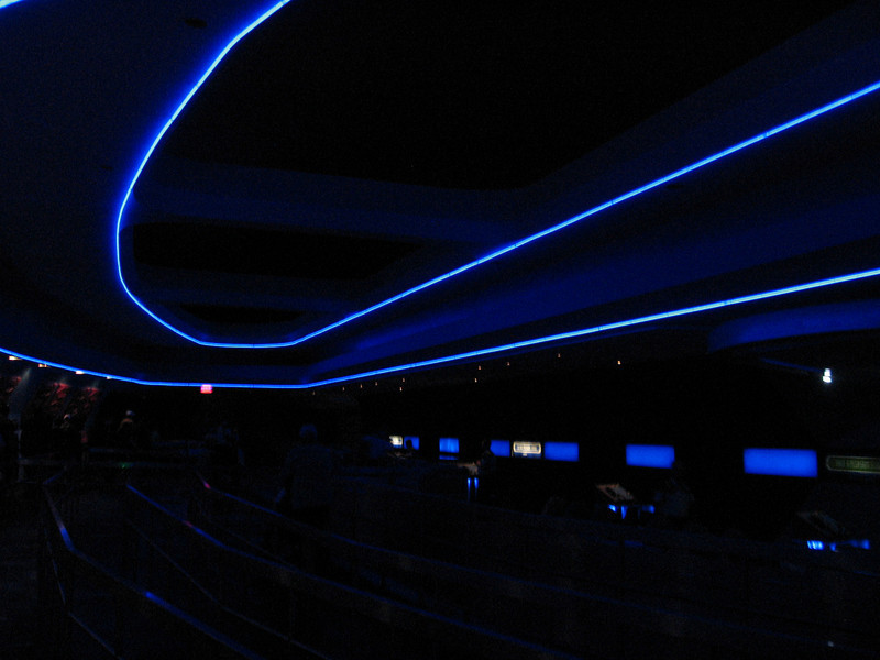 Hard to see here, but there is a projection of a space station similar to the one featured in Horizons on the loading area ceiling