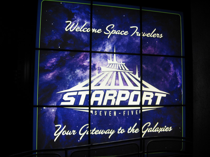 Inside the queue, the old destinations board has been replaced by this sign, bolstering the new Starport storyline