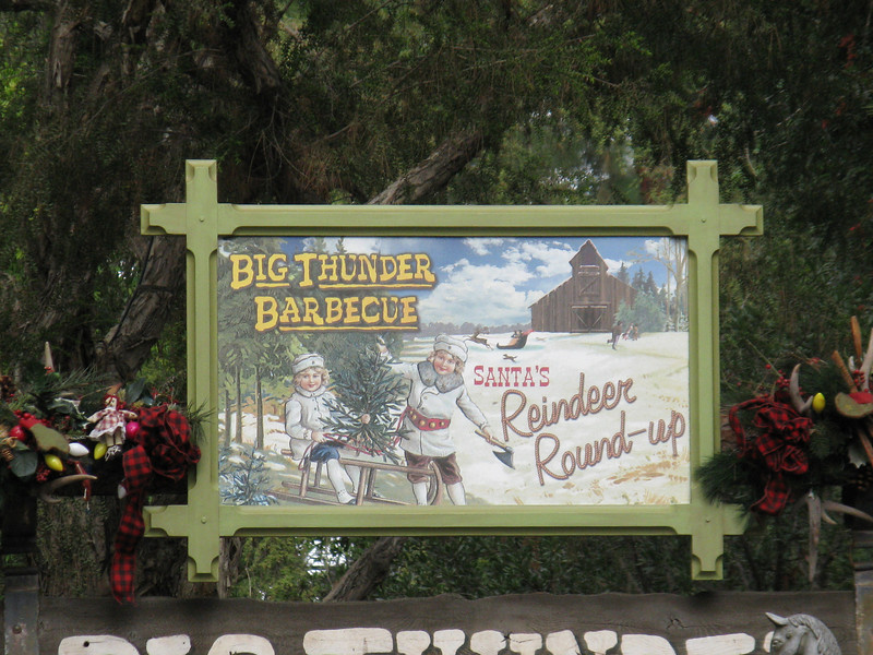 A holiday sign promoting Big Thunder Barbecue and Santa’s Reindeer Round-up
