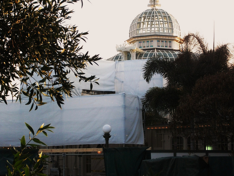 Most of the tarps on the Crystal Palace are down