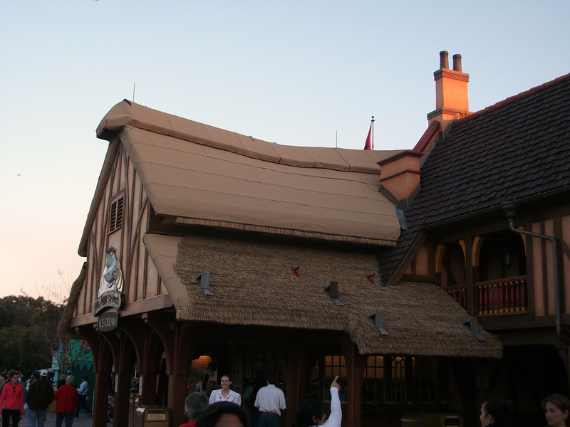The thatched roof for Mrs. Potts’ Cupboard (actually visible in the Fantasyland Expansion model) is starting to take shape
