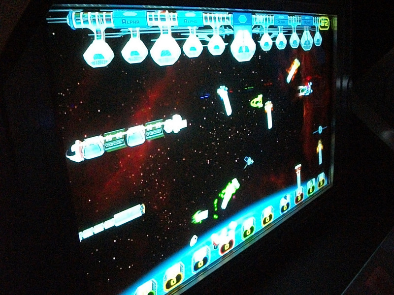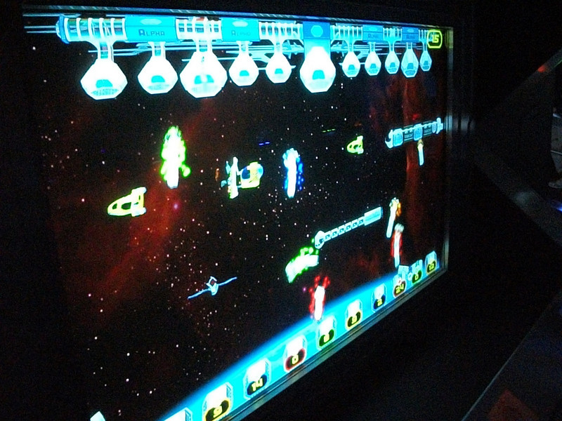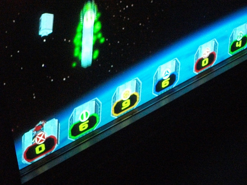 This is a “Frogger” style game with guests having to cross the divide without getting hit by spaceships