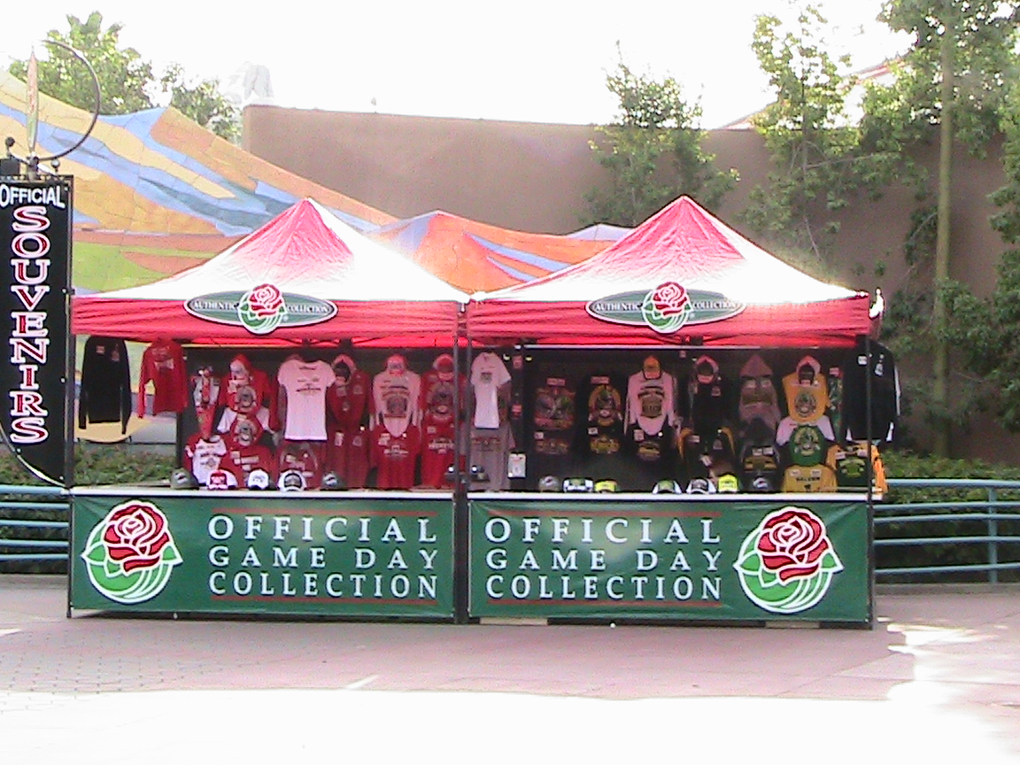 A temporary location was set-up by the California Adventure to sell Rose Bowl merchandise