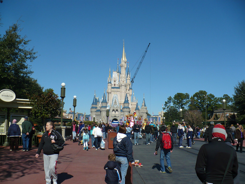 The crane is up behind Cinderella Castle to remove the holiday dream lights