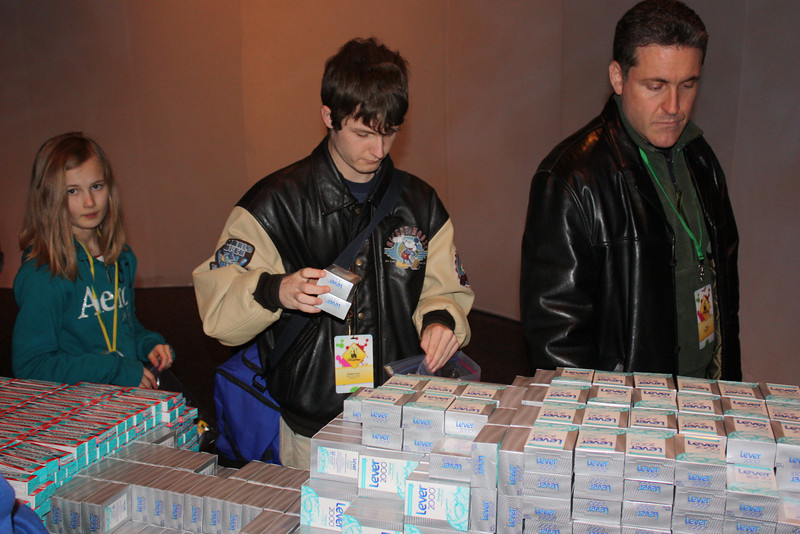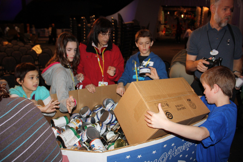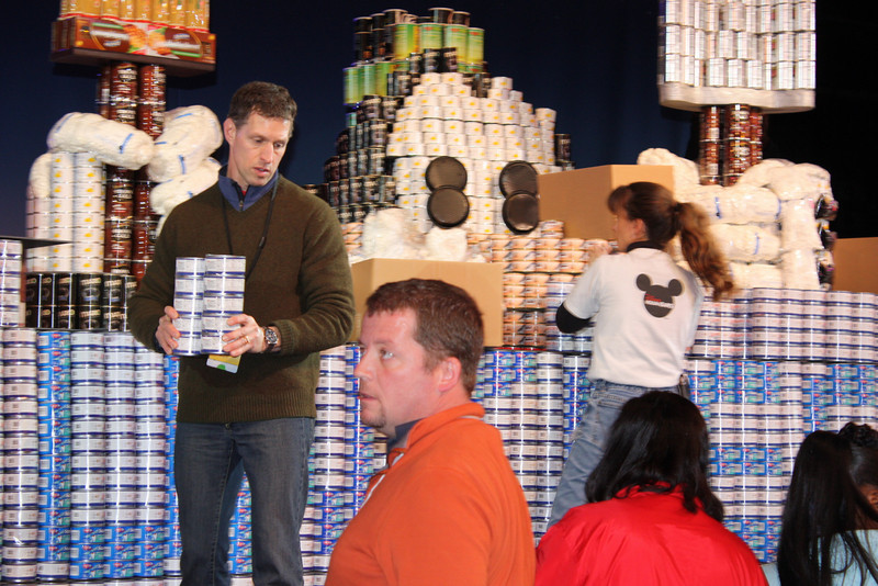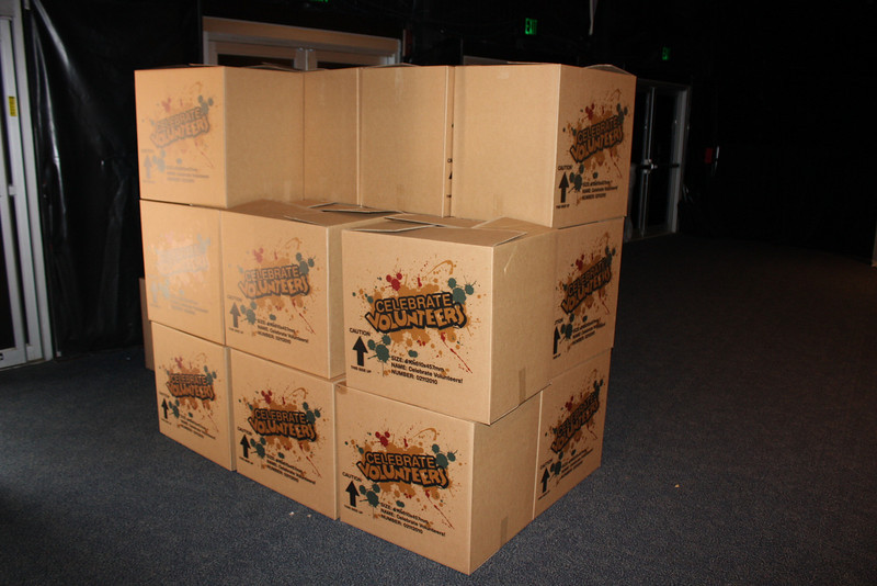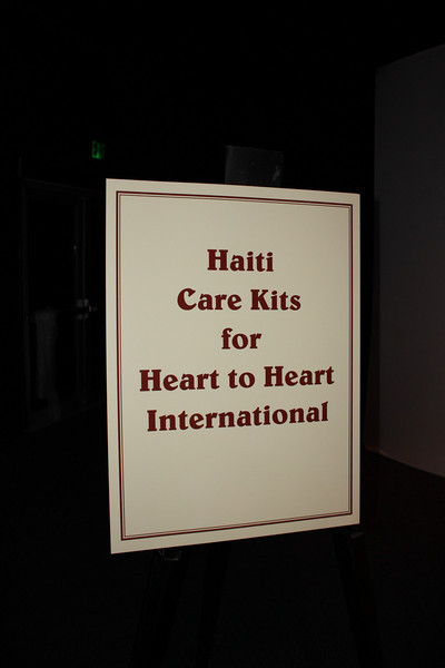 Matt and Banks help put together Haiti care packages with all the volunteers